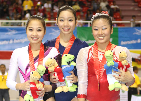 Do SEA Games 27 không có TDDC nên Ngân Thương (trái) và Hà Thanh (giữa) sẽ không có cơ hội bảo vệ thành tích mà họ giành được tại SEA Games 26. Ảnh: Quang Nhựt